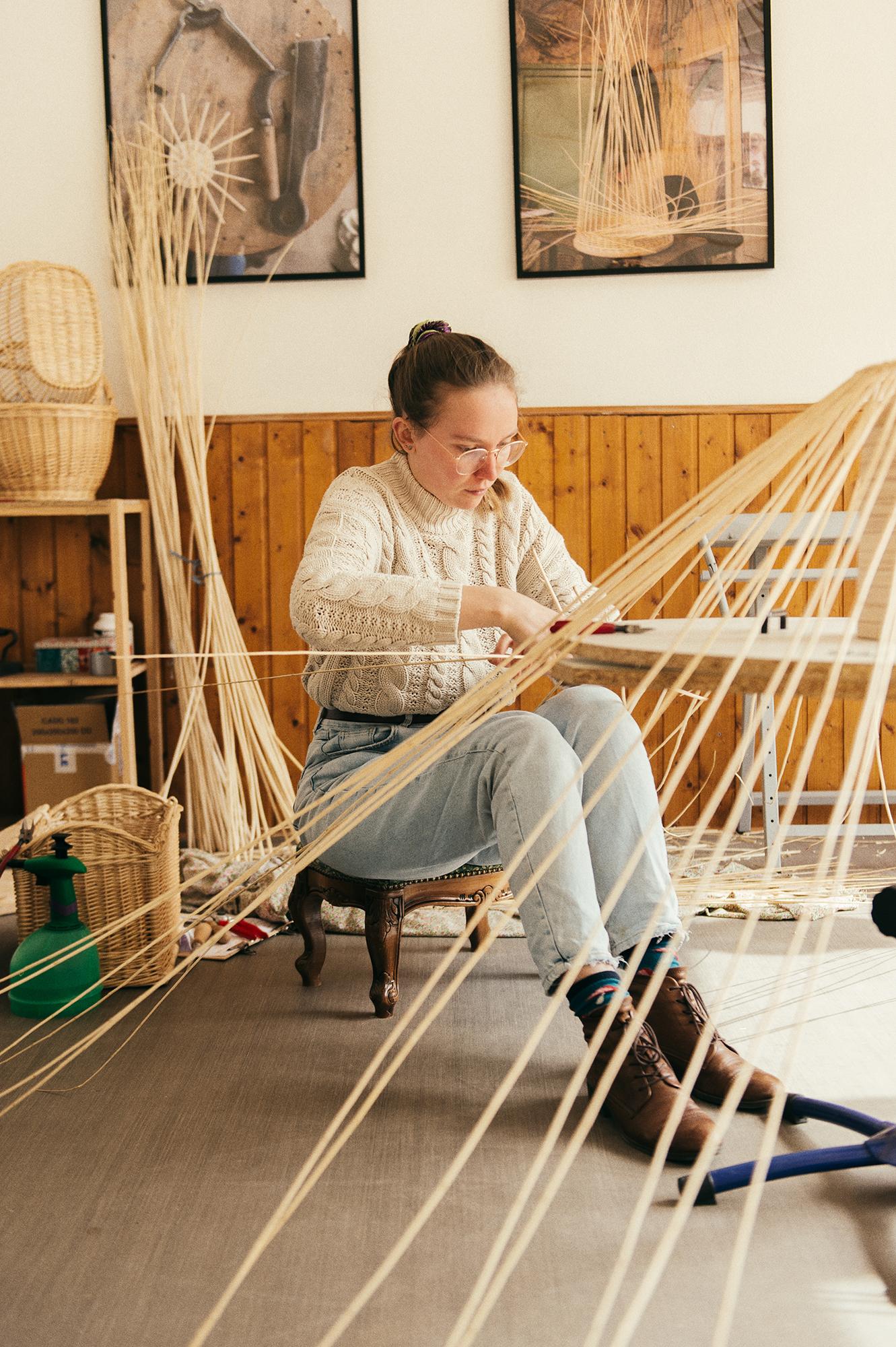 Lucie propose aussi des ateliers d'initiation à la vannerie auprès d'un public varié afin de faire découvrir son savoir-faire.